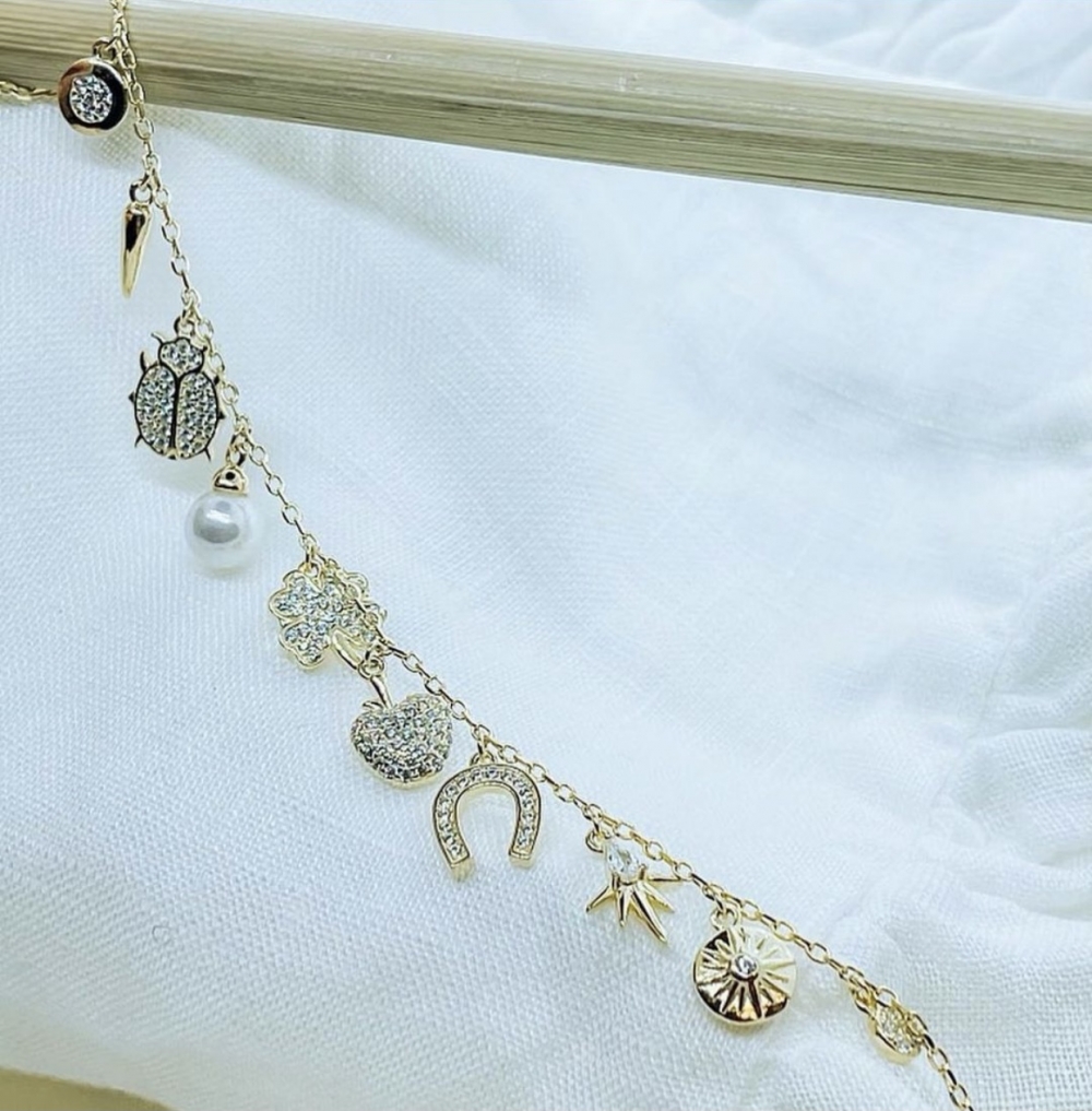 Charm i forgylt sølv med Zirkonia