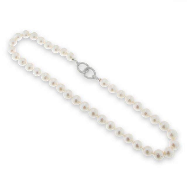 Collier i rhodinert sølv med perler og klare Zirkonia